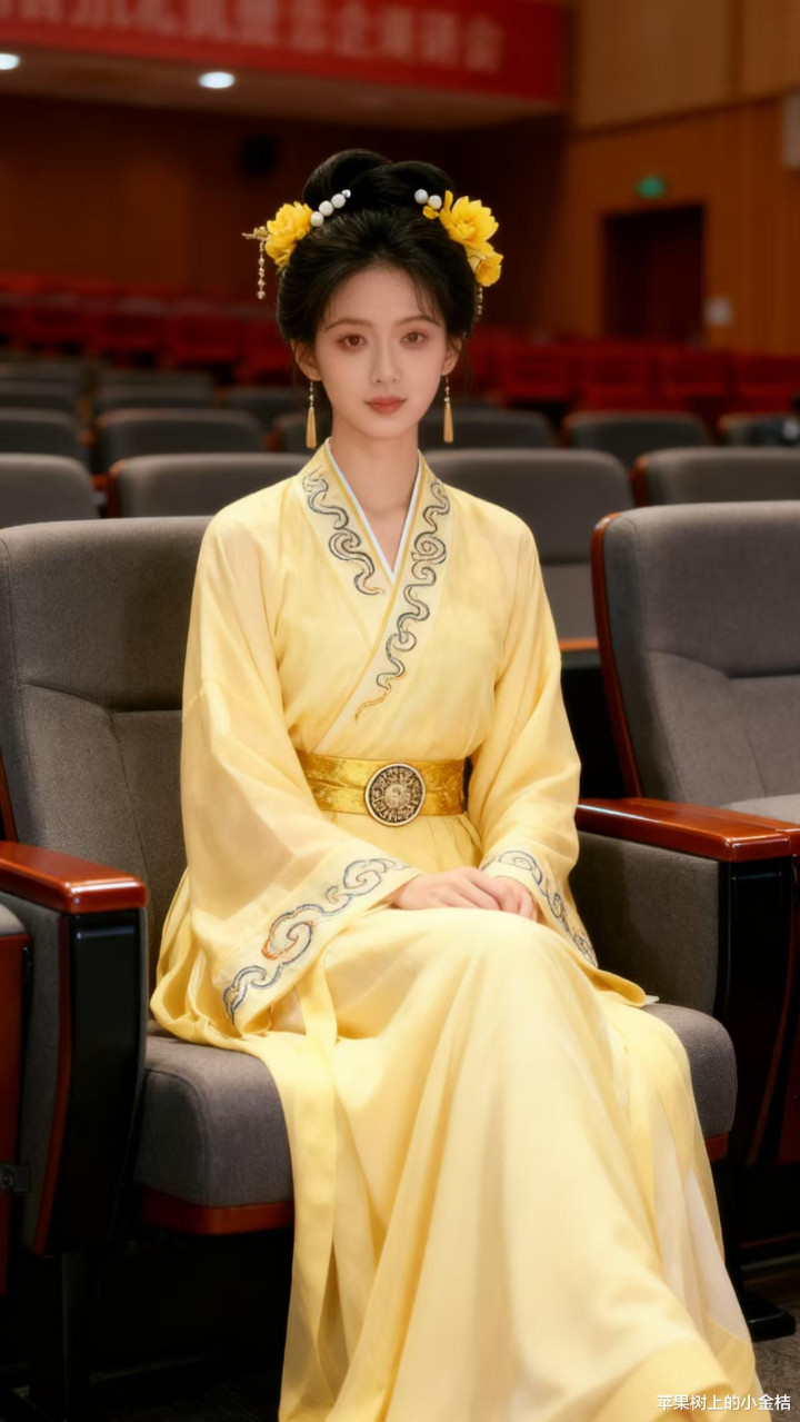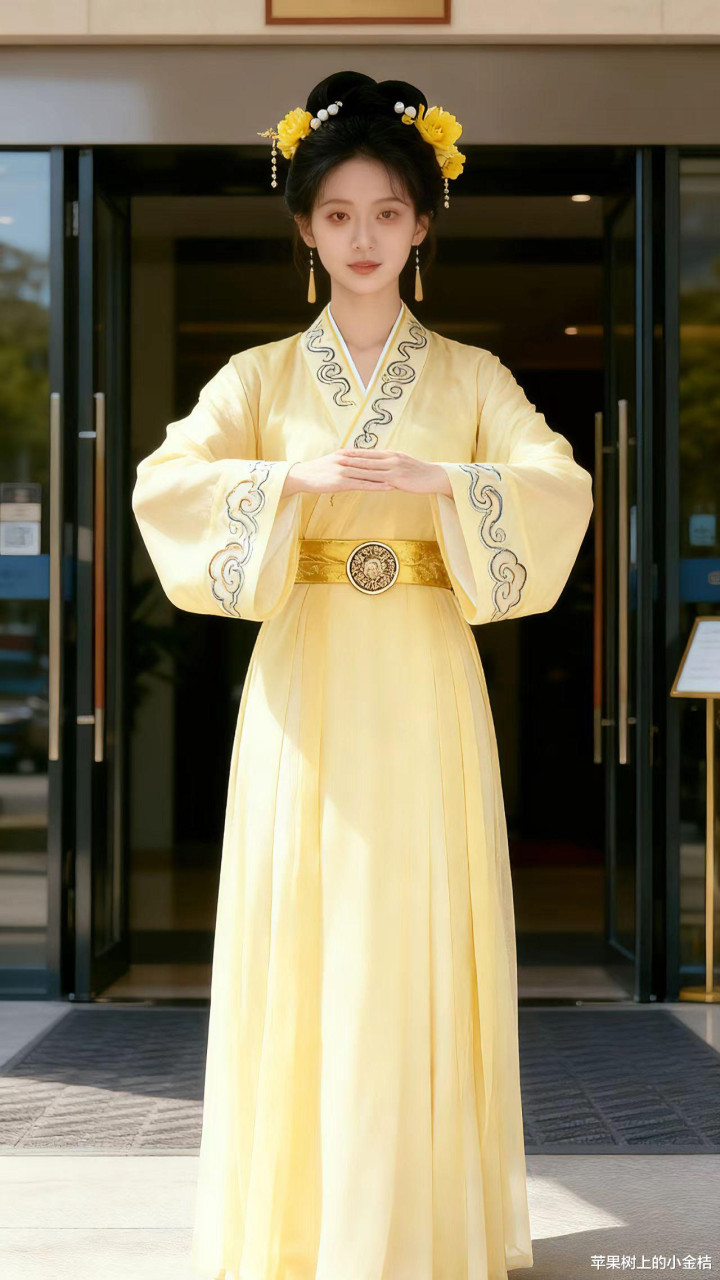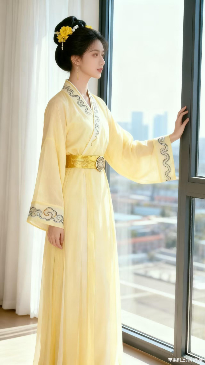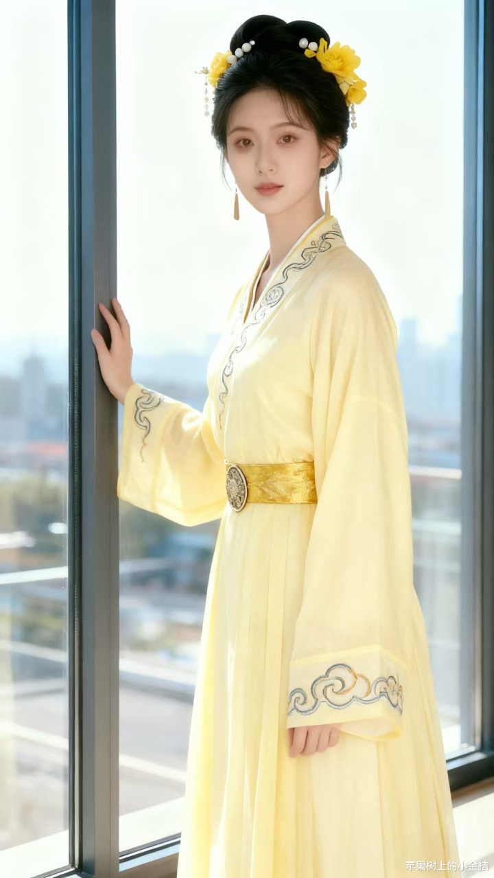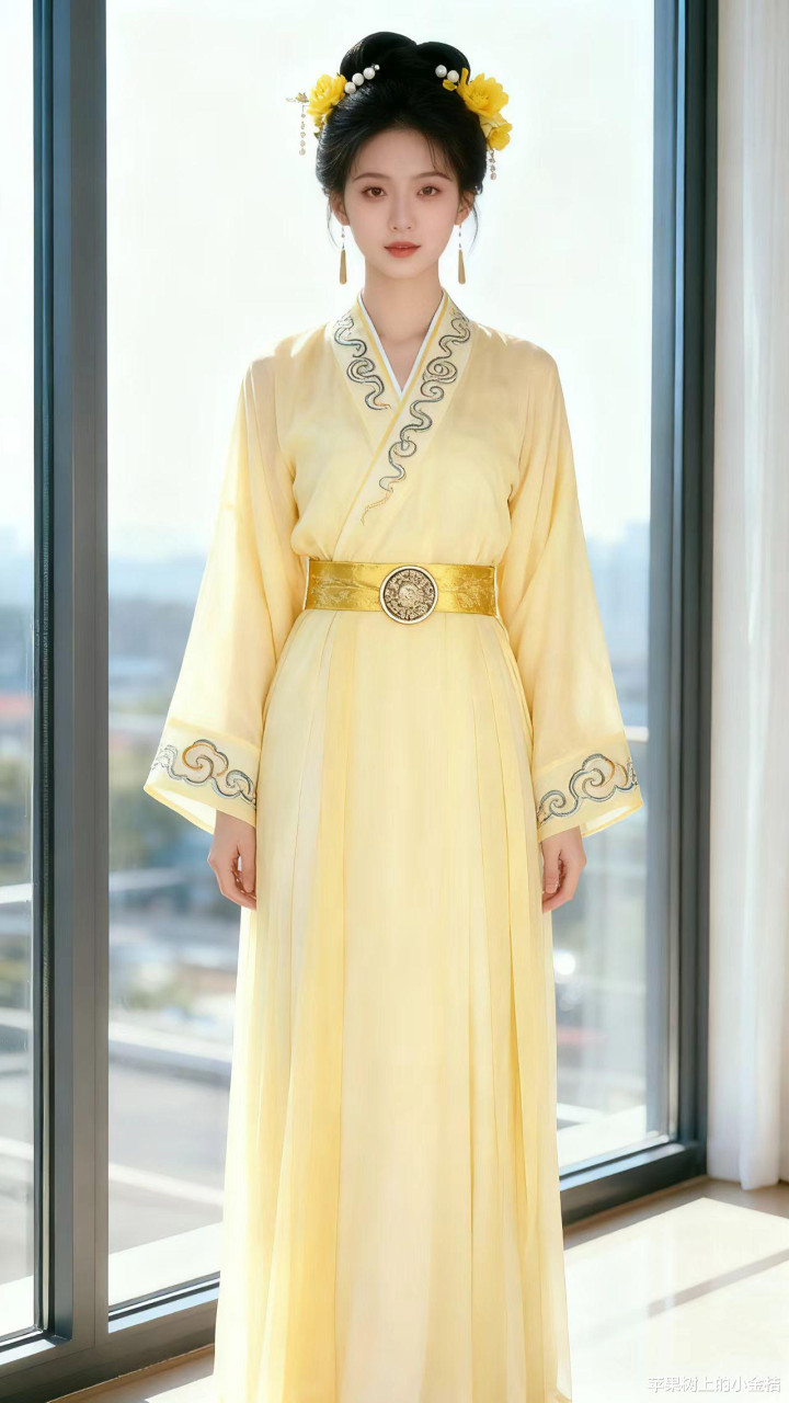 > 浅黄色汉服, 回忆古典装之美。优雅, 贵气。
